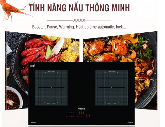 Bếp từ Chefs EH DIH666 là model bếp từ inverter cao cấp của Chefs trong phân khúc bếp từ lắp ráp tại Việt Nam chính vì thế mà tất cả các tính năng cần có của một chiếc bếp từ inverter thì bếp từ Chefs EH DIH666 đều được sở hữu, điều này khiến người dùng ngỡ như đang dùng một chiếc bếp từ của Đức hơn là một chiếc bếp lắp ráp tại Việt Nam. Một điều nữa chắc chắn rằng chiếc bếp từ này sẽ mang đến một trải nghiệm hoản hảo nhất, thông minh nhất và tiện nghi nhất với các tính năng hỗ trợ đun nấu đỉnh cao nhất hiện nay như chức năng booster nấu ăn nhanh giúp công suất cao nhất mà mỗi vùng nấu có thể đạt được là 3000w, chức năng tạm dừng bếp (pause) khi đang đun nấu, chức năng giữ ấm, ninh hầm tự động, hẹn giờ tắt bếp đặc biệt...