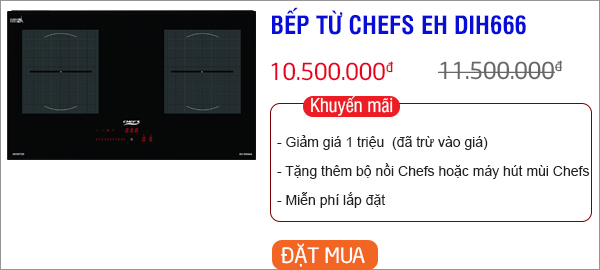 Chefs EH DIH666 là mẫu bếp từ đầu tiên lắp ráp tại Việt Nam có tích hợp công nghệ inverter và nó đã mang lại một cách mạng trong việc sản xuất bếp từ chất lượng cao tại Việt Nam. Sở hữu khá đầy đủ các tính năng của một chiếc bếp inverter như booster, pause, warm, timer, automatic...kết hợp với hệ thống điều khiển siêu mới cảm ứng dạng ẩn thì việc sở hữu chiếc bếp từ chefs này là một điều hoàn hảo cho mọi gia đình